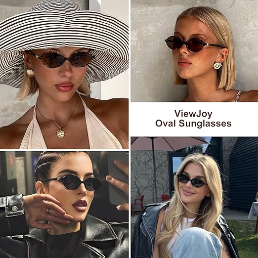 Stylish Retro Oval Sunglasses for Women: These small oval sunglasses feature a 90s inspired frame, blending Y2K aesthetic with modern minimalism. The small oval shape flatters petite faces and adds a timeless vintage vibe to any look – perfect for fashion lovers who adore retro-chic sunglasses.